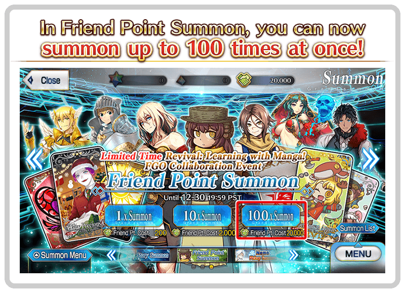 If you don't have enough Friend Points for a 100x Summon, you can instead summon for the maximum number of times possible with your current Friend Points.