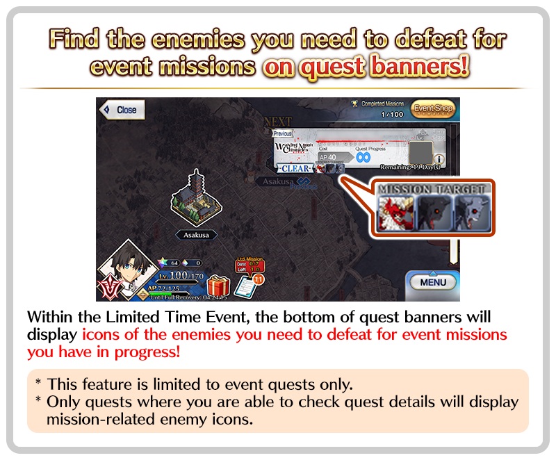 Within the Limited Time Event, quest banners will display icons of the enemies you need to defeat for event missions you have in progress!