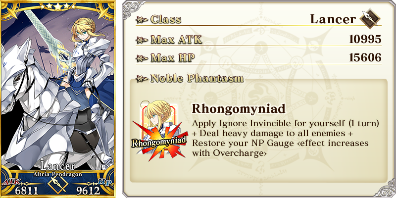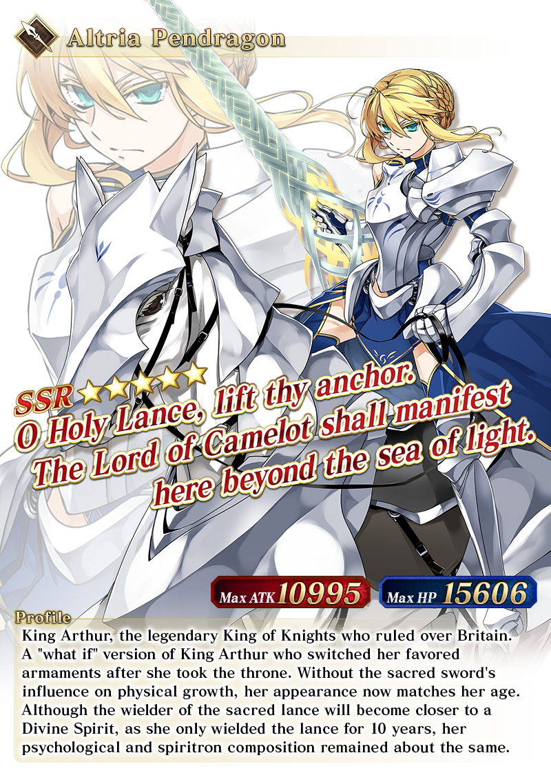- ★5 (SSR) Altria Pendragon (Lancer)