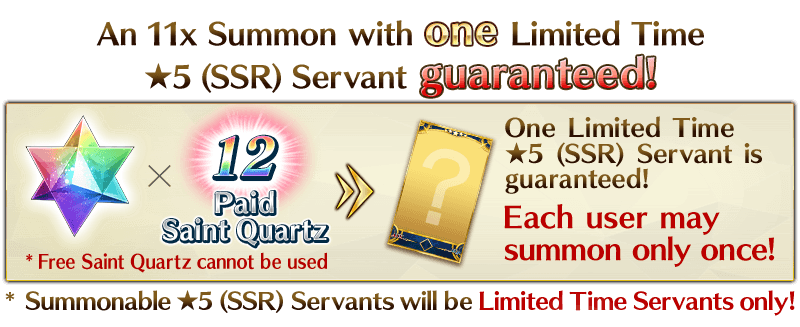 * 12 Paid Saint Quartz must be used for this Summon. Free Saint Quartz cannot be used.