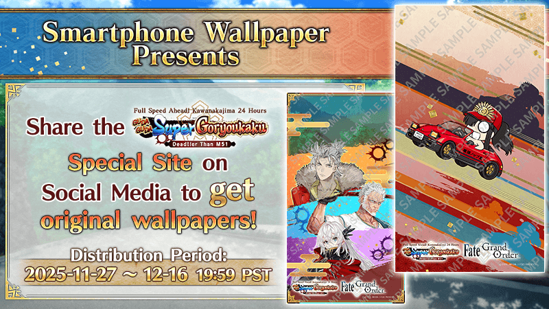 We'll be distributing smartphone wallpapers on the Limited Time Event "Full Speed Ahead! Kawanakajima 24 Hours GUDAGUDA Super Goryoukaku: Deadlier Than M51" Special Site!