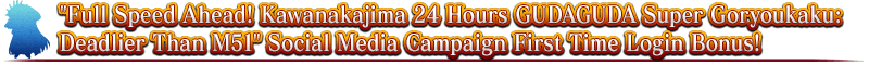 To celebrate achieving 25,000 reactions in the "'Full Speed Ahead! Kawanakajima 24 Hours GUDAGUDA Super Goryoukaku: Deadlier Than M51' Social Media Campaign", we'll be distributing a special login bonus!
