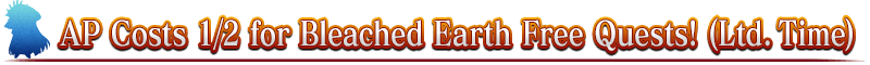 Free Quests on the Bleached Earth will have their AP costs halved during the period below! (AP costs will be halved even if you withdraw from battle)
