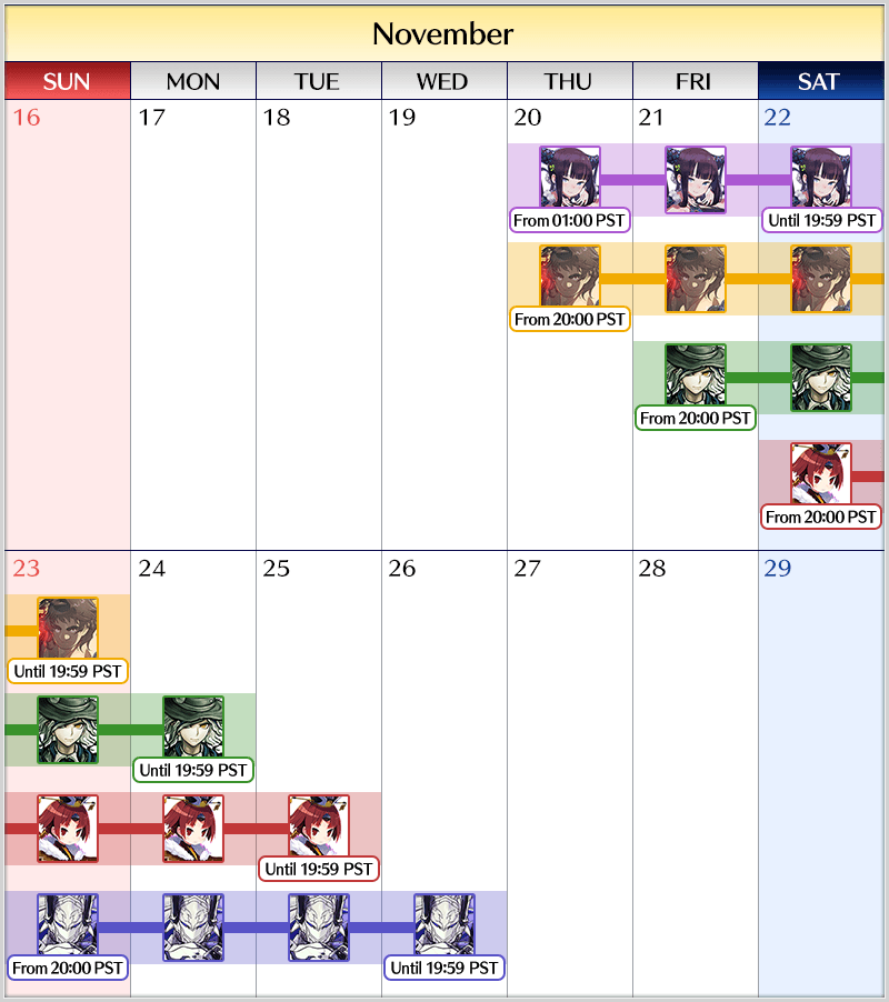 * Bonus Summons will be calculated separately for each Summon Lineup. * Please note that the Summon Period for each Pickup Summon will differ. * In this Summon, only the Pickup ★5 (SSR) Servant in each individual Summon will be eligible for the "Guaranteed Summon" feature.