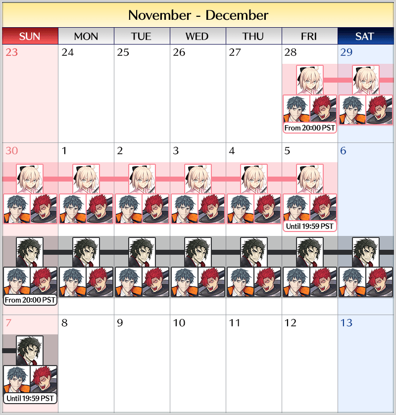 * Bonus Summons will be calculated separately for each Summon Lineup. * Please note that the Summon Period for each Pickup Summon will differ. * In this Summon, only the Pickup ★5 (SSR) Servant in each individual Summon will be eligible for the "Guaranteed Summon" feature.