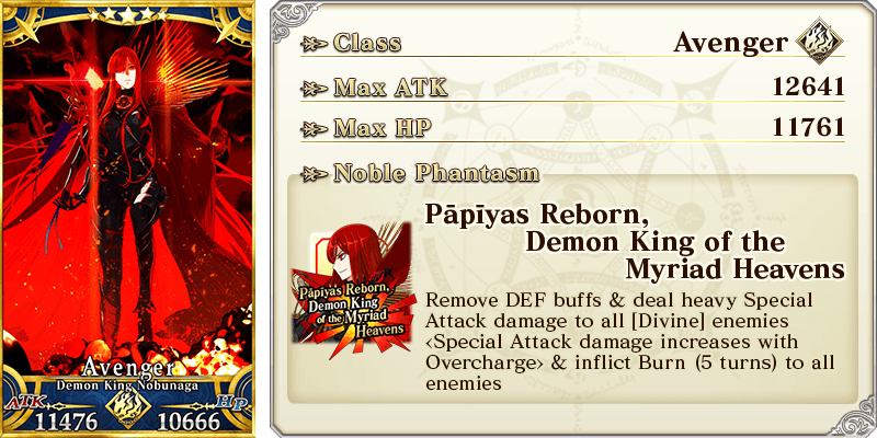 * The name displayed for ★5 (SSR) Demon King Nobunaga (Oda Nobunaga) will change from "★5 (SSR) Oda Nobunaga" to "★5 (SSR) Demon King Nobunaga" with Stage 3 Ascension.