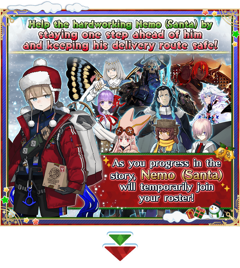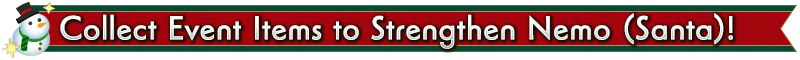Use this opportunity to quickly strengthen ★4 (SR) Nemo (Santa) once he joins your party and take advantage of his event bonuses!