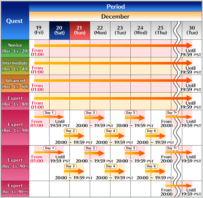 | Main Quest Day 1 | 2025-12-19 20:00 - 12-30 19:59 PST (GMT -8) |