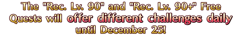 Among the Free Quests that are unlocked by progressing through the Main Quests, the "Expert (Rec. Lv. 90)" and "Expert (Rec. Lv. 90+)" quests will change daily until the seventh day.