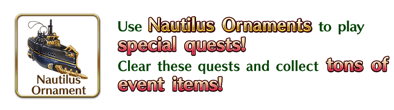 * The special quest will also be available to Masters who haven't met the requirements to play the event's Main Quests (clearing Part 2 Chapter 6.5 "Realm of the Thanatos Impulse, Traum - Life and Death of an Illusion"). * If you fail to clear the quest, the Nautilus Ornaments will not be expended. * Nautilus Ornaments will disappear at the end of the exchange period.