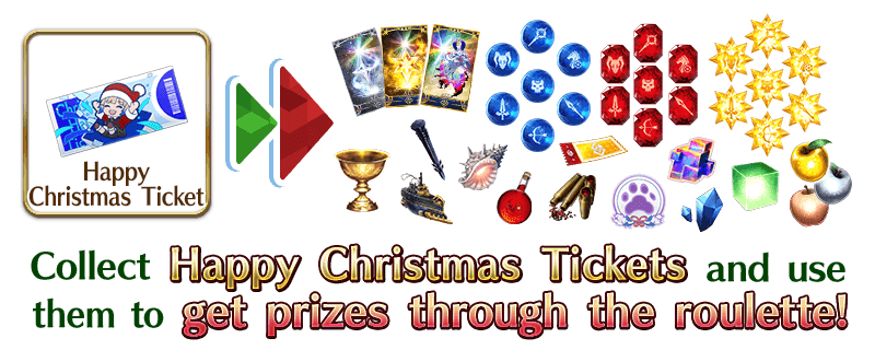 Collect Happy Christmas Tickets through event quests and exchange them for prizes through the roulette!