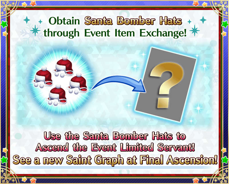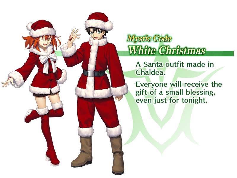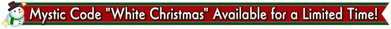 * If you obtain the Mystic Code "White Christmas" through Event Item Exchange before fulfilling the requirements to play the event's Main Quests, and then you subsequently fulfill those requirements and clear the Main Quest that awards the Mystic Code, the event items you exchanged for the Mystic Code will be refunded to your Present Box.