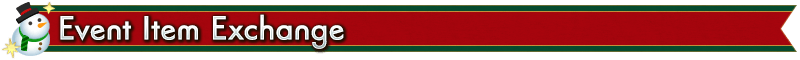 Event items can be exchanged for the following items through "Event Item Exchange", accessible from the "Event Shop" button in the upper right corner of the Terminal.
