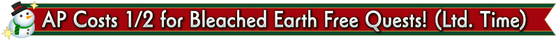 Free Quests on the Bleached Earth will have their AP costs halved during the period below! (AP costs will be halved even if you withdraw from battle)