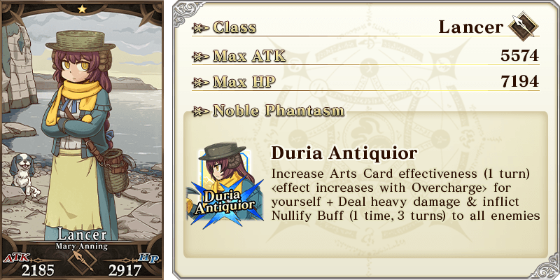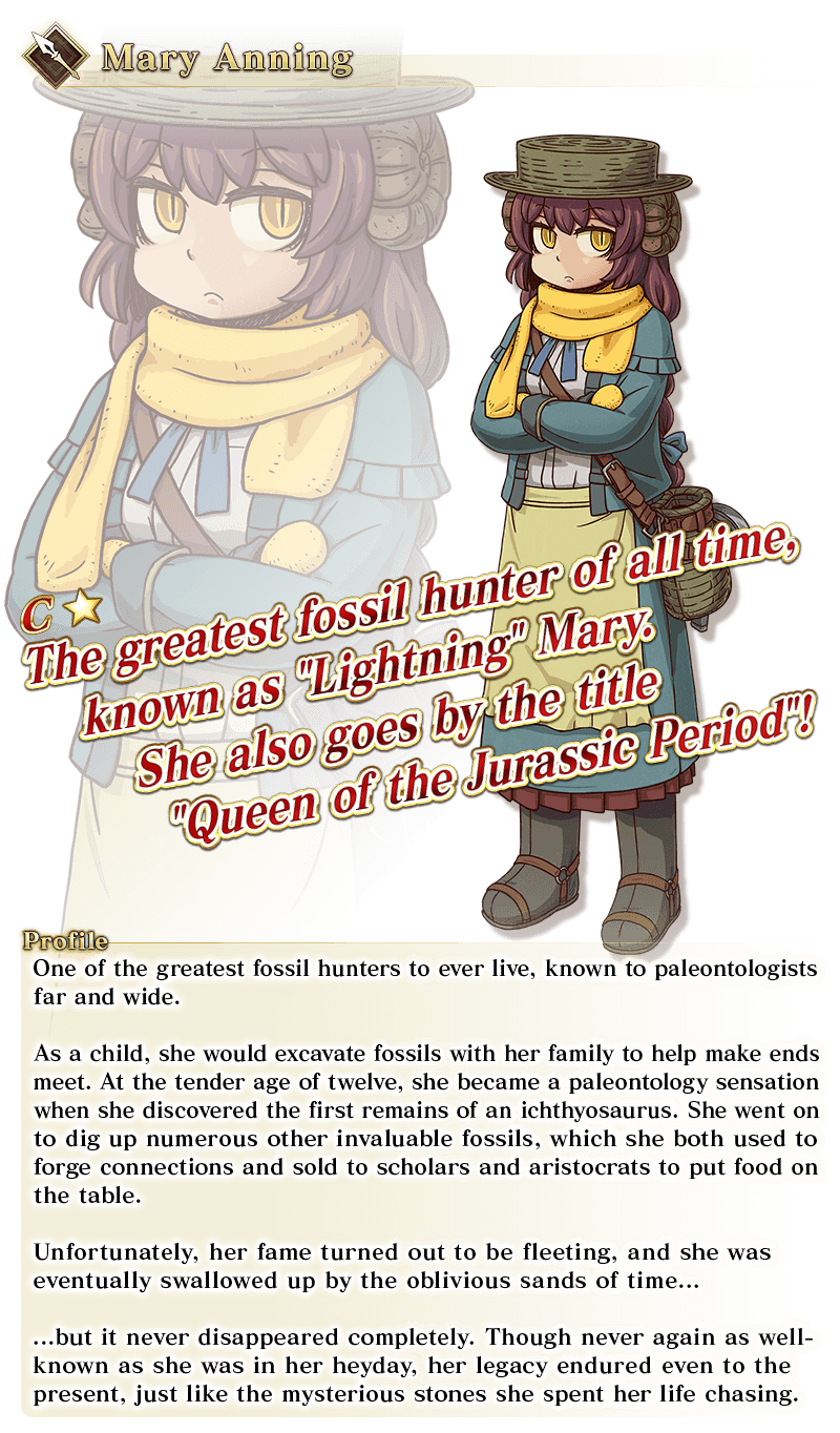 In addition to the cards that normally appear in Friend Point Summon, ★1 (C) Mary Anning, who is limited to this Summon, as well as "★4 (SR) Super Bunyan Appears" and "★3 (R) Daikokuten & Anning Appear" (EXP cards for greatly strengthening your Craft Essences) will be summonable!
