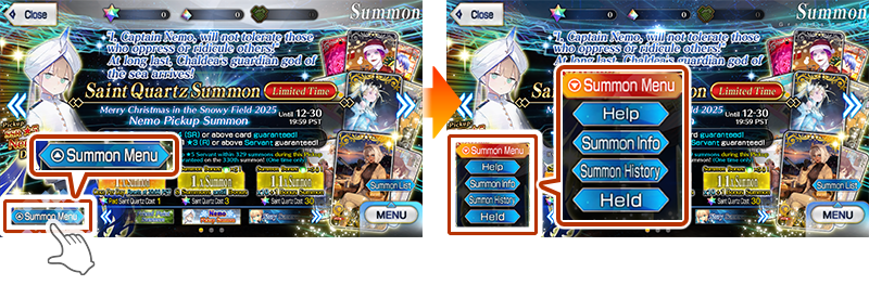 A "Summon Menu" button has been added to the bottom left of the Summon screen.