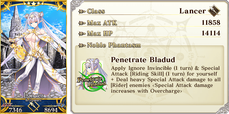 About Featured Servants: * The following Limited Time Servant(s) will not be added to Story Summon after the Pickup Summon period ends. - ★5 (SSR) Britomart * Servants added to Story Summon through story progression will not be summonable. Please be sure to confirm the lineup before summoning.