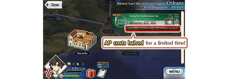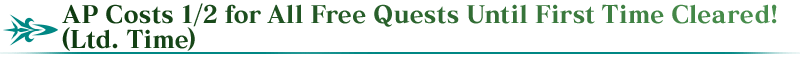 During the period below, all Free Quests will have their AP costs halved until the first clear!
