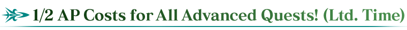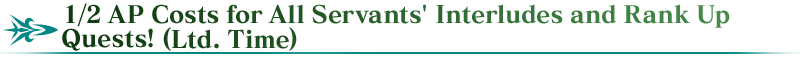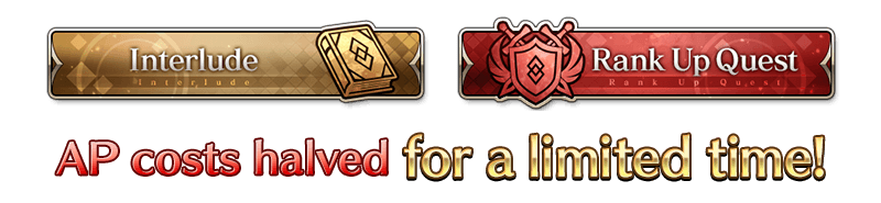 During the period below, all Servants' Interludes and Rank Up Quests will have their AP costs halved! (AP costs will be halved even if you withdraw from battle)