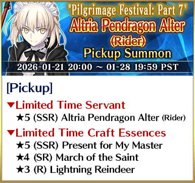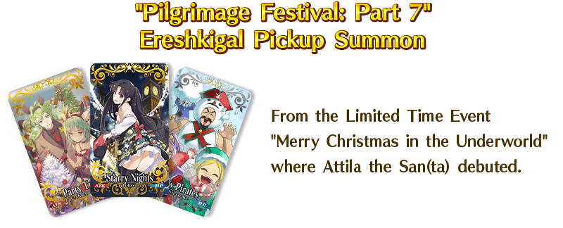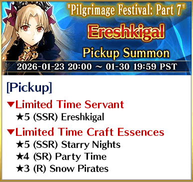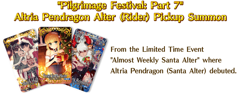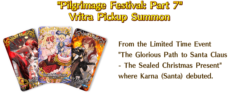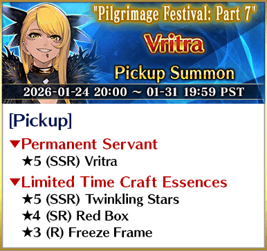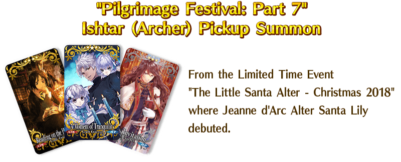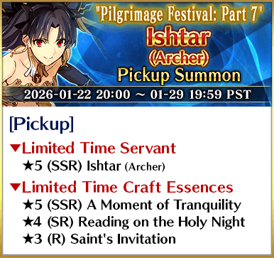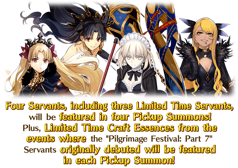 In addition, Limited Time Craft Essences from the events where the "Pilgrimage Festival: Part 7" Servants debuted will be featured in each Pickup Summon!