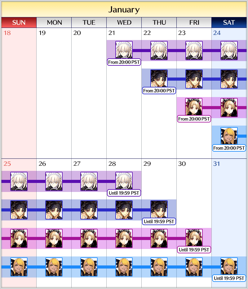 * Bonus Summons will be calculated separately for each Summon Lineup. * Please note that the Summon Period for each Pickup Summon will differ. * In this Summon, only the Pickup ★5 (SSR) Servant in each individual Summon will be eligible for the "Guaranteed Summon" feature.