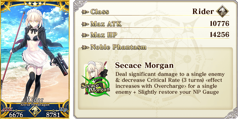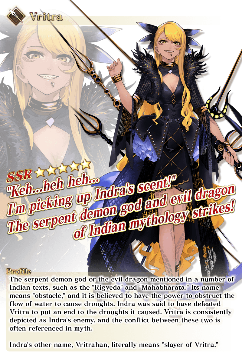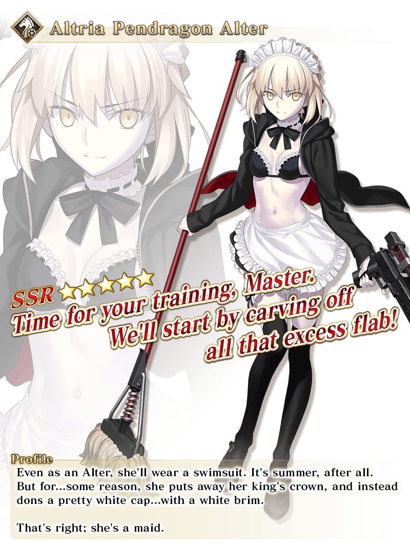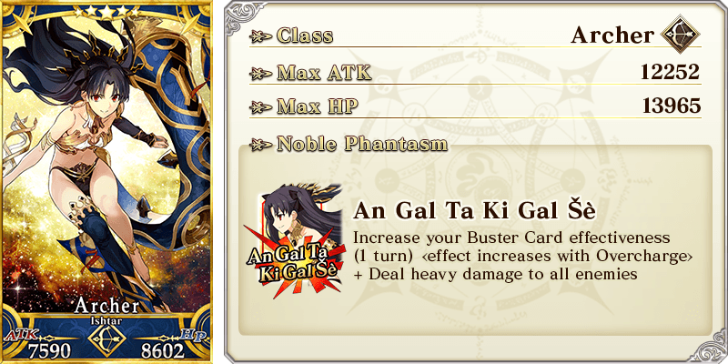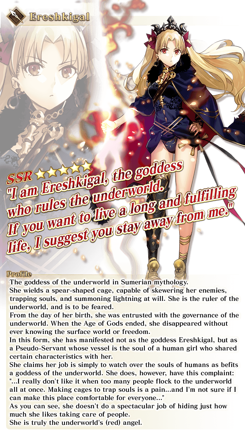 About Featured Servants: * The following Limited Time Servant(s) will only be summonable from the Summon Lineup(s) where they are featured as a Pickup Servant. In addition, they will not be added to Story Summon after the Pickup Summon period ends. - ★5 (SSR) Altria Pendragon Alter (Rider) - ★5 (SSR) Ishtar (Archer) - ★5 (SSR) Ereshkigal * The following Servant(s) will continue to be available through Story Summon after the Pickup Summon period ends. - ★5 (SSR) Vritra * Servants added to Story Summon through story progression will not be summonable. Please be sure to confirm the lineup before summoning.