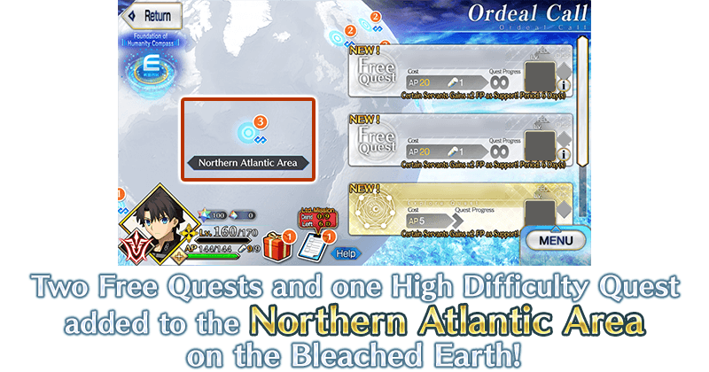 Free Quests on the Bleached Earth will have their AP costs halved during the period below! (AP costs will be halved even if you withdraw from battle)