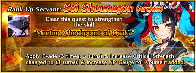 Rank Up Quests to strengthen ★5 (SSR) Sei Shounagon (Archer) and ★5 (SSR) Murasaki Shikibu (Caster) will be permanently added within Chaldea Gate.