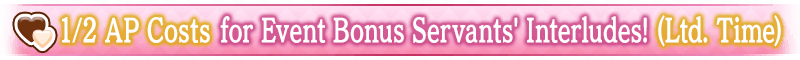 During the period listed below, Interludes for event bonus Servants will have their AP costs halved! (AP costs will be halved even if you withdraw from battle)