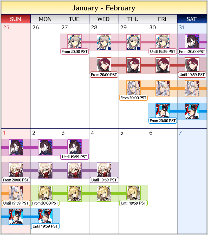 * Bonus Summons will be calculated separately for each Summon Lineup. * Please note that the Summon Period for each Pickup Summon will differ. * In this Summon, only the Pickup ★5 (SSR) Servant in each individual Summon will be eligible for the "Guaranteed Summon" feature.
