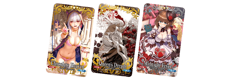About Featured Craft Essences: * The Limited Time Craft Essences available from this Pickup Summon will not grant an event bonus within the Limited Time Event "Valentine's 2026". * The Limited Time Craft Essence(s) featured in this Summon will only be summonable from the Summon Lineup(s) where they are featured as a Pickup Craft Essence. Please be sure to confirm the lineup before summoning. * The featured ★3 (R) Limited Time Craft Essence(s) will not be summonable from Friend Point Summon.