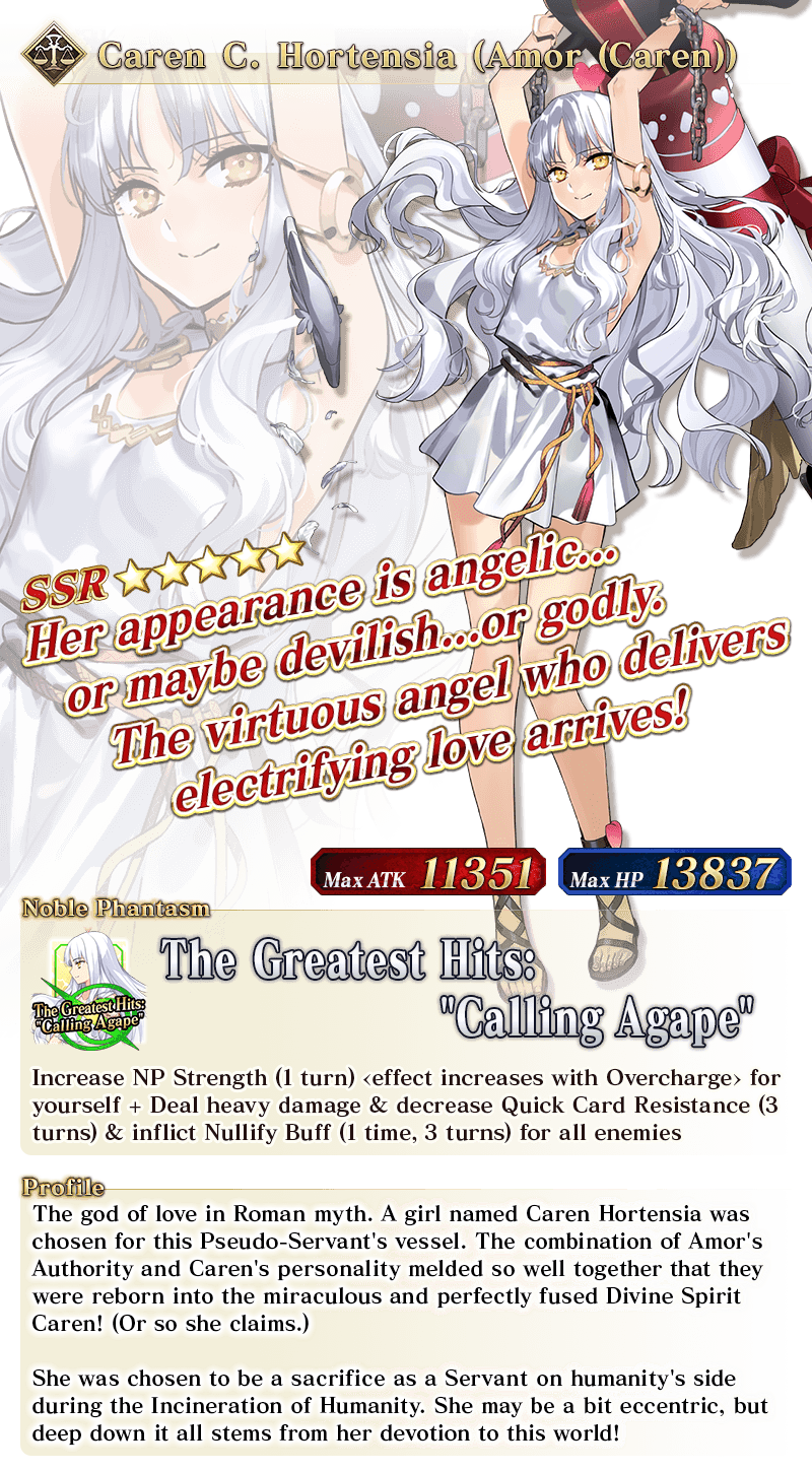 * The name displayed on ★5 (SSR) Amor (Caren)'s Saint Graph will change to "★5 (SSR) Caren C. Hortensia" with Ascension.