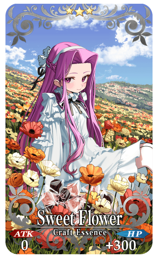 About Featured Craft Essences: * The following Craft Essence(s) will also be available from Friend Point Summon for the duration of the Pickup Summon period. In addition, the Craft Essence(s) will be automatically burned if you have ★3 (R) Craft Essences included in your Automatic Burning settings. Please check your settings before summoning. - ★3 (R) Sweet Flower