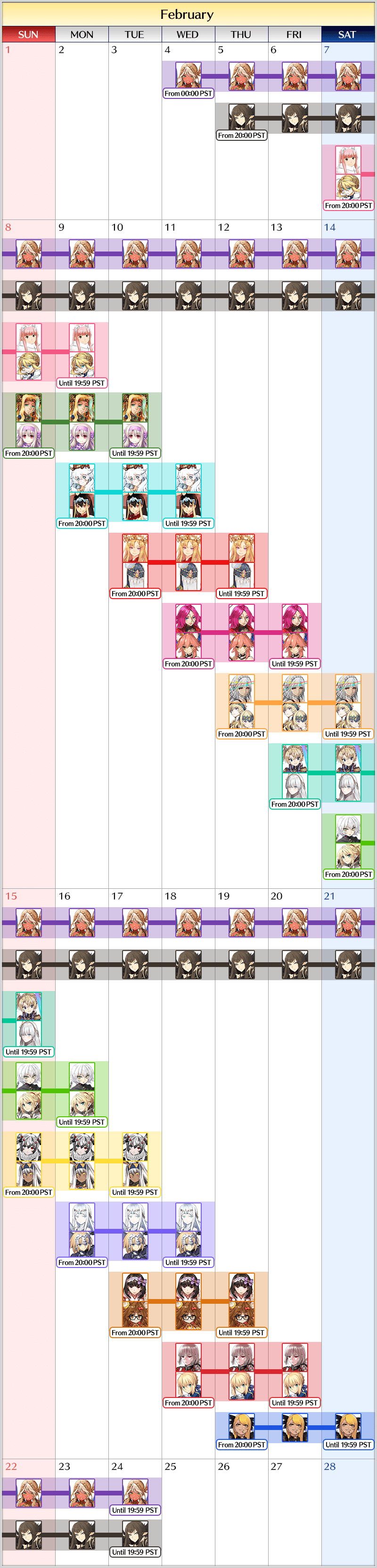 "Valentine's 2026 Pickup Summon" Schedule:
