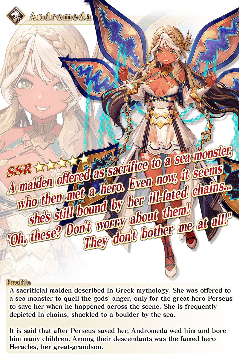 * Once you have unlocked ★5 (SSR) Andromeda's Stage 3 Ascension, you will be able to view the full version of her Stage 3 Ascension illustration on the Servant Details screen by pressing the Saint Graph.