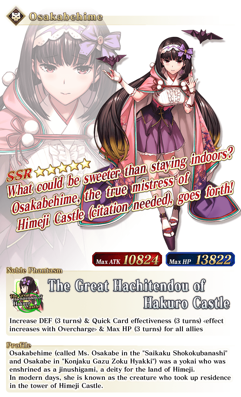 * Please note that this illustration is of the Servant at Stage 2 Ascension. * The name displayed for ★5 (SSR) Jinako Carigiri (Great Stone Statue God) will change from "★5 (SSR) Great Stone Statue God" to "★5 (SSR) Jinako Carigiri" with Stage 2 Ascension.