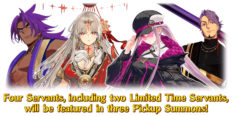 To go along with the "Ordeal Call II Pre-Release Campaign", four Servants, including two Limited Time Servants, will be available for Pickup in three different Summons!