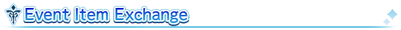 Event items can be exchanged for the following items through "Event Item Exchange", accessible from the "Event Shop" button in the upper right corner of the Terminal.