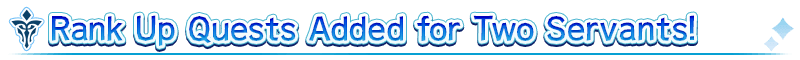* The unlock requirements for ★5 (SSR) Charlemagne's Rank Up Quest can still be fulfilled by achieving Final Ascension even if you have not completed his Spirit Origin Release Quest. * For Servants who already have one or more Rank Up Quests, you must also clear those first. * Please note that Servant Rank Up Quests are battle-only quests. * If you do not own the Servant in question, their quest will not be displayed. * Rank Up Quests are not limited time quests.