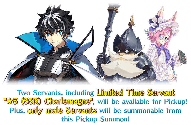In addition, along with the Pickup Servants, only male Servants (including Story Summon Servants) will be summonable in this Pickup Summon!