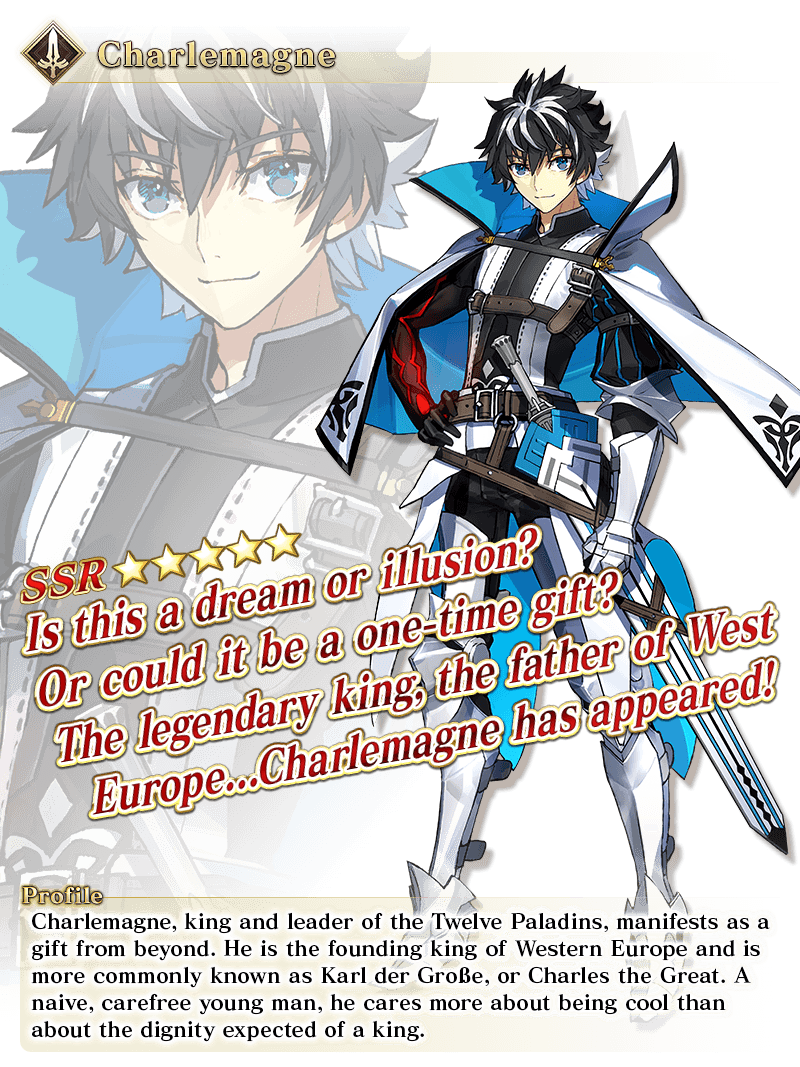 * The Spirit Origin Release Quest for ★5 (SSR) Charlemagne can be unlocked by raising him to Stage 3 Ascension.