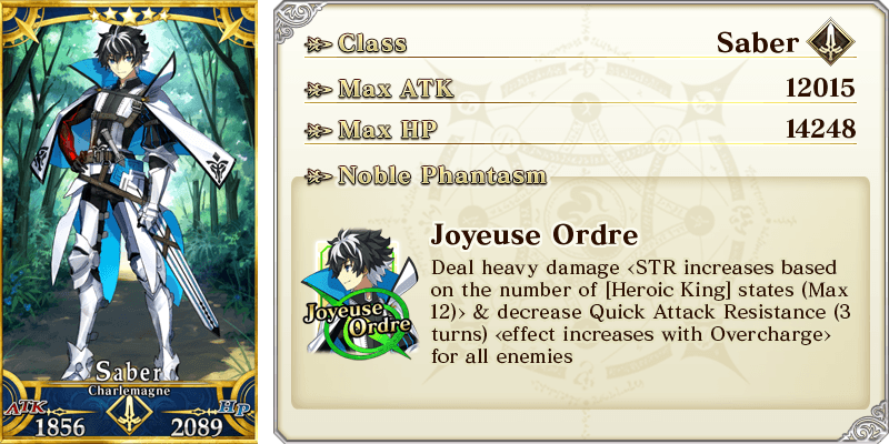 * The Saint Graph and battle sprite displayed for ★5 (SSR) Charlemagne will only change to Stage 2 with Ascension.