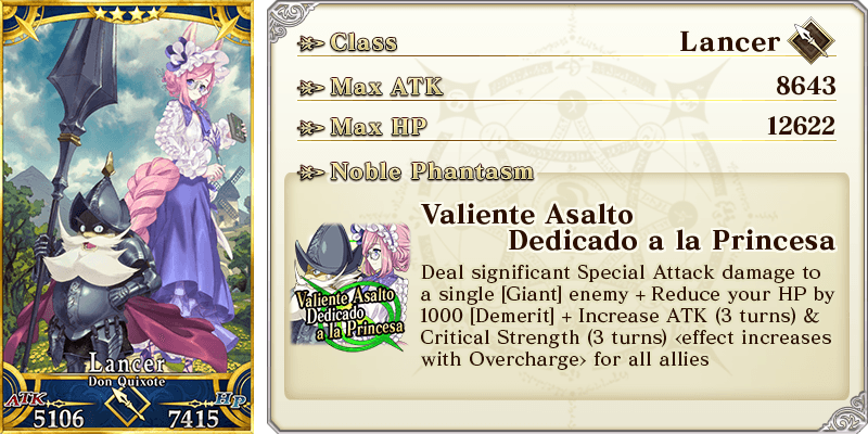 * Please note that this Saint Graph and illustration show ★4 (SR) Don Quixote at Stage 2 Ascension.