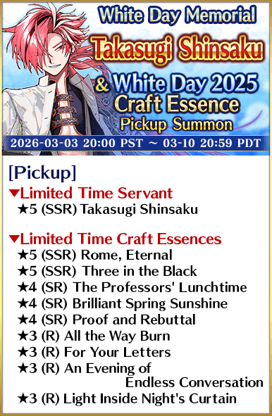 Takasugi Shinsaku & White Day 2025 Craft Essence Pickup Summon