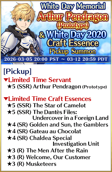 Arthur Pendragon (Prototype) & White Day 2020 Craft Essence Pickup Summon
