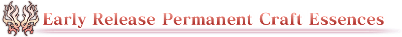 Early Release Permanent Craft Essences - ★5 (SSR) One Who Failed To Achieve Immortality - ★4 (SR) Recollections of Smoke - ★4 (SR) Ordinary Blade