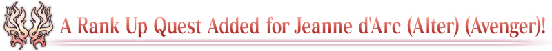 A Servant Rank Up Quest to strengthen ★5 (SSR) Jeanne d'Arc (Alter) (Avenger) will be permanently added to Chaldea Gate.