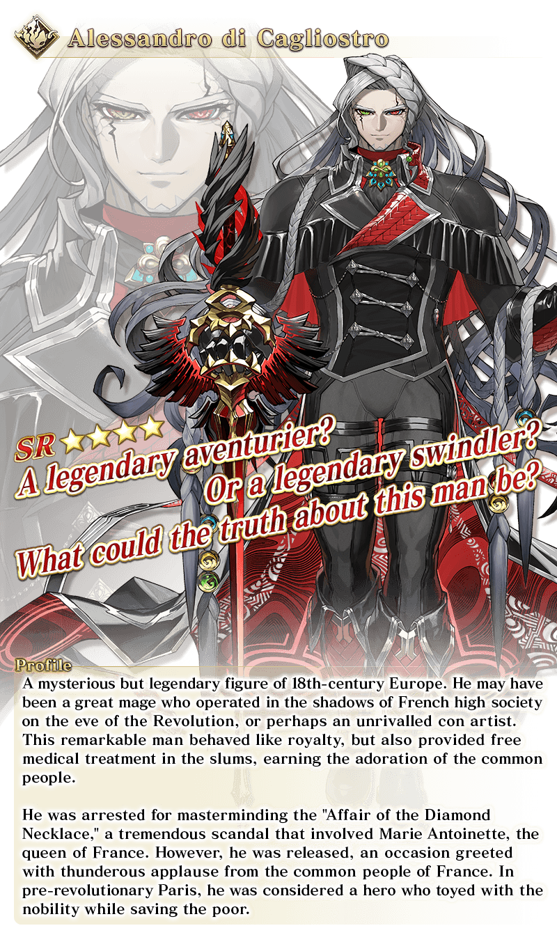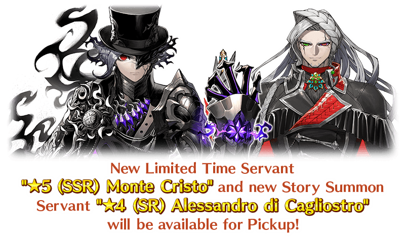 To commemorate the release of "Ordeal Call II: The Inescapable Gehenna, Id", new Limited Time Servant "★5 (SSR) Monte Cristo" and new Story Summon Servant "★4 (SR) Alessandro di Cagliostro" will be available for Pickup!