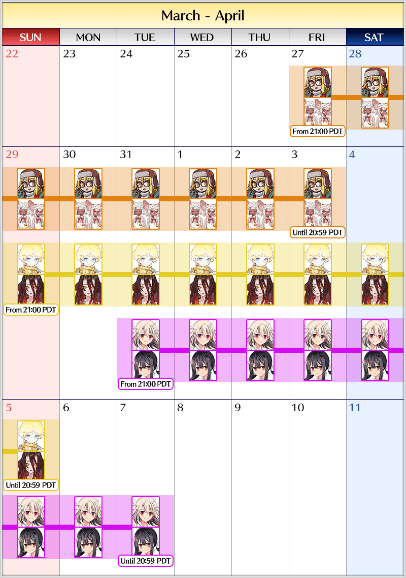 "Past Collaboration Event Pickup Summon" Schedule: