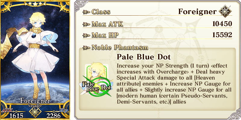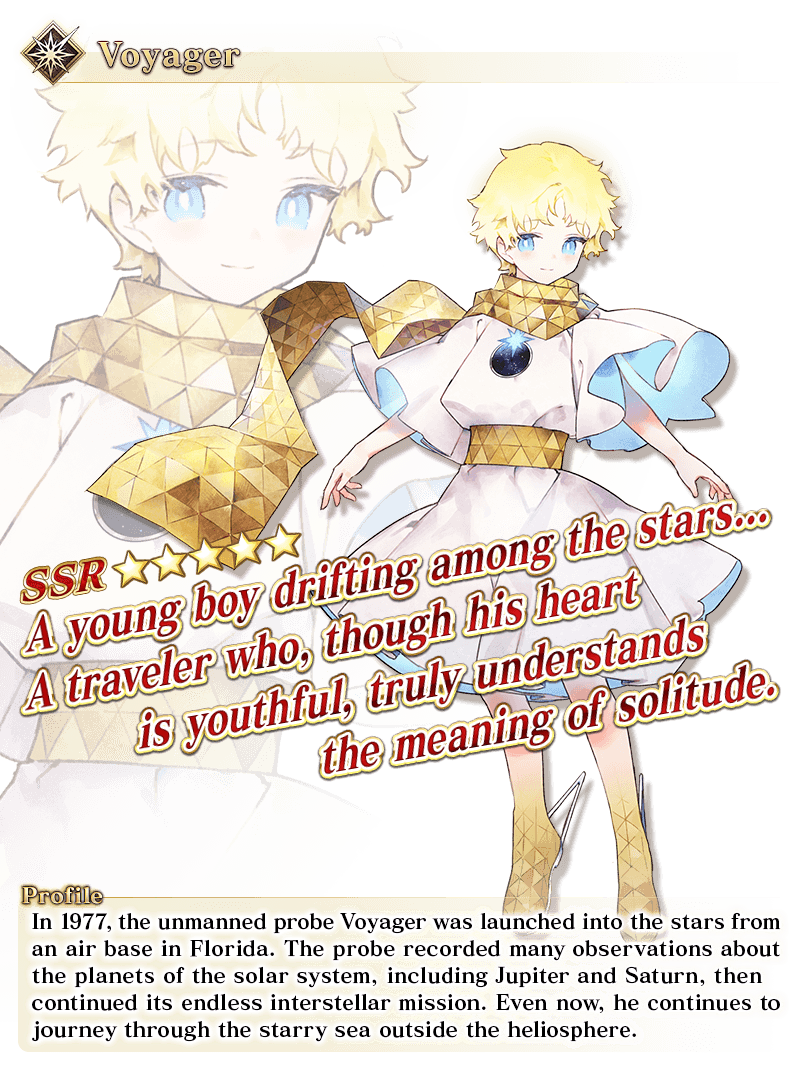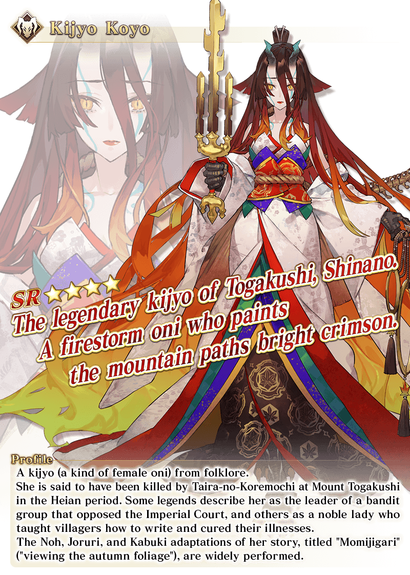 * The animations displayed for ★5 (SSR) Super Bunyan's Noble Phantasm will change based on Ascension stage. * The animations displayed for ★5 (SSR) Voyager's Noble Phantasm will change based on Ascension stage. * The video for ★4 (SR) Kijyo Koyo's Noble Phantasm features her Stage 1 Ascension.